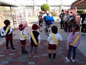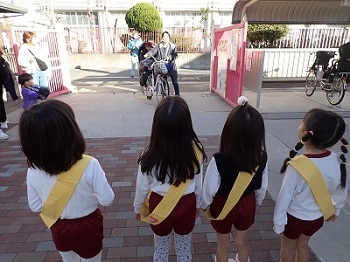 12月9日〜13日の1週間、5歳児が門の前に立って、登園してくる友達やお家の人に「おはようございます!」と元気に挨拶をして迎えました。