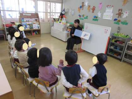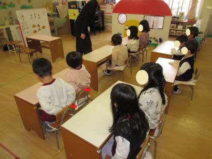 3歳児あか組では「良い姿勢」について保健指導を行いました。