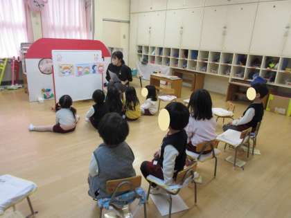 3歳児あか組では「みみのおやくそく」について保健指導をしました。