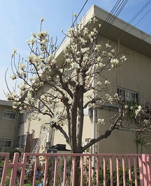 玄関のハクモクレン、ビオランドのアーモンドの花が満開で、タンポポがあちらこちらに咲いています。とってもキレイですよ。
