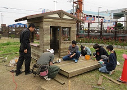 5日(土)に工務部の皆さんが子どもの家づくりの続きをしてくださいました。壁がつき、なんとテラスまで!!とっても頑丈につくり、さらに研磨して安全に配慮してくださっています。完成はもう少し先ですが、もう入っても大丈夫だそうです。