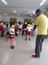 今日は5歳児が、瓜破北地域のおじいさんおばあさんに会いに行きました。じゃんけんや肩たたきでふれあった後、けん玉やコマなどの遊びを一緒にしてもらいました。印象的だったのは、子どもたちもおじいさんおばあさんも、みんな笑顔にあふれていたこと。帰るころにはすっかり仲良しになり、手を振り合って別れました。「楽しかった!」「また会いたい!」と子どもたちは大喜びでした。