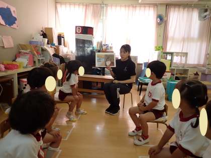 3歳児あか組では、「プールの着替えの約束」について保健指導を行いました。