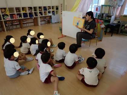 4歳児もも組では、「熱中症を防ごう」をテーマに保健指導をしました。