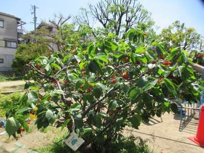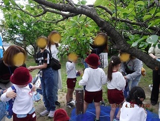 4月末、幼稚園のサクランボがきれいな赤色に染まり、親子で収穫をしました。今年も豊作で、たくさんのサクランボが採れました。子どもたちは、「美味しかった!」「甘かったよ」と、とても喜んでいました。