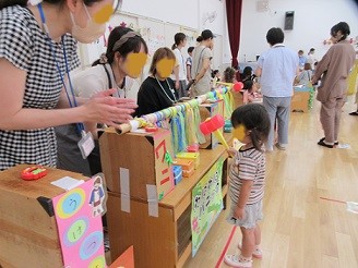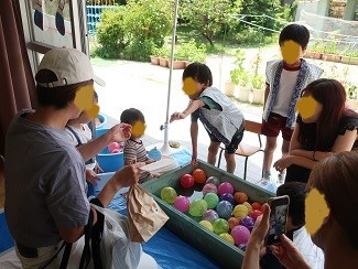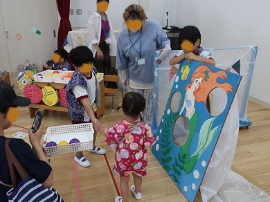 保護者の方が、子どもたちのために『わんぱくまつり』をしてくださいました。ヨーヨー釣りや、的当て、輪投げなど、たくさんの遊びがいっぱい!子どもたちは大喜びで遊びました。