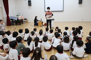 話が終わった後も、5歳児は「ランドセルが重くて走れなかったらどうしたらいい?」など、気になったことを次々と担任に質問していました。子どもたちなりに防犯について考える機会となったことも、良かったなと感じました。