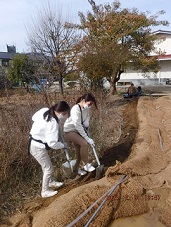 先生たちが一生懸命穴を掘ったりパイプを設置したりしています。どうなるのかな・・・?