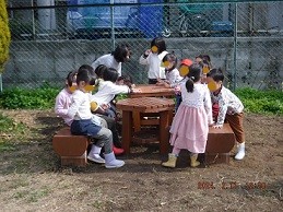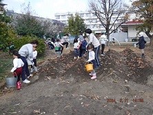 子どもたちも、畑や田んぼの栄養になる落ち葉をたくさん集めたり、草抜きをしたりして大活躍!おうちの方や、地域の皆様、中学生、大学生は、畑にその落ち葉を混ぜ込み畝をつくったり、水路が安全になるよう修正したり、雨水がたまる場所に土を入れ遊びやすくしたりしました。みんなが草を抜いたところには、ベンチや机、先日植えた花や野菜を置き、蝶たちの集まるレストランになりました!早速子どもたちはベンチに座り、その雰囲気を楽しんでいました。