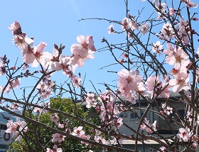 昨日のクイズの答え、分かりましたか?正解は『アーモンド』です。アーモンドの花って、淡いピンク色のこんなに可愛い花なんですよ。