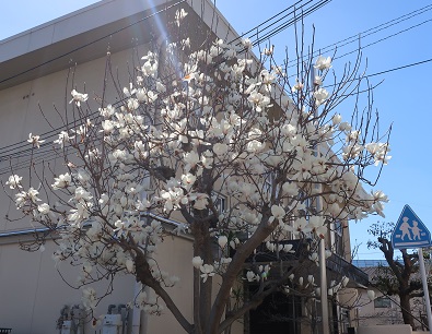 玄関には『ハクモクレン』が満開です。幼稚園の前を通る際には、ぜひ見上げてみてください。モクレンは地球上で最古の花と言われています。一億年も昔、恐竜の時代から存在しているそうです。恐竜は春を、モクレンで感じていたのかもしれませんね。