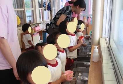 3歳児あか組では「ガラガラうがい」について保健指導をしました。