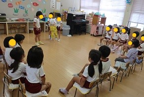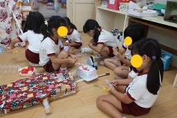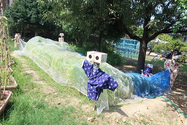 先週は色々な素材を使ってかかしづくりを楽しみました。そしてどこを工夫してつくったかなど、互いに知らせ合う時間ももちました。