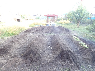 秋の野菜の収穫が終わり、次の野菜を植える準備をはじめようと思っていた矢先…。昨日数名の保護者の方が朝早くから畑を耕し、立派な畝をつくってくださいました。あまりのきれいな畝に教職員一同感謝感激しました☆彡