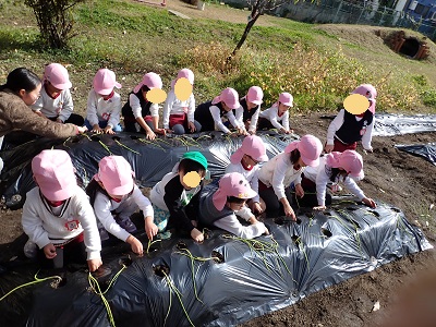 皆様ののおかげで、今日4歳児と3歳児で玉ねぎの苗を植えることができました。