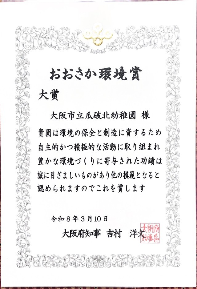 令和7年度おおさか環境賞「大賞」を受賞いたしました。