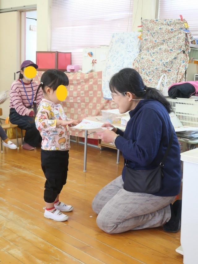 最後は、園長先生から証書やプレゼントをもらいました。おうちの人も、1年間一緒に通ってくださいました。おうちの人も子どもたちも、みんなとてもよく頑張りました!