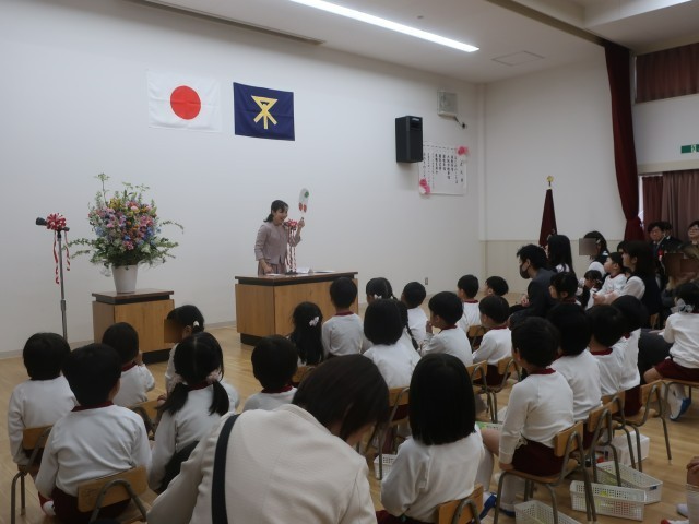 地域のお客様もお祝いに来てくださり、温かい雰囲気の中入園式を執り行うことができました。