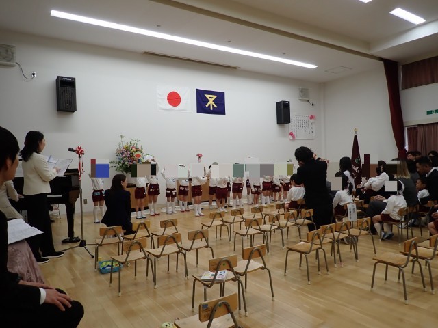 在園児も式に参列し、言葉と歌でお祝いをしました。
