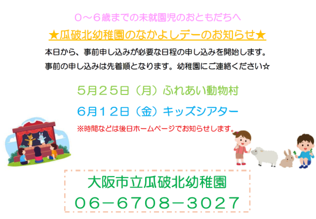 未就園児の皆さんへ★なかよしデーのお知らせ