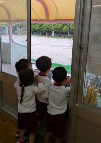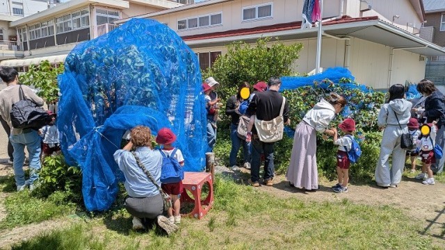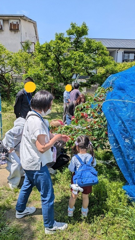 本園にはサクランボの木が2本あります。4月中旬には赤く実りだしたので、先生たちがネットをかけて鳥が全部を食べないように守ってくれました。そのかいあり今年は大豊作!!保護者の方と一緒に、コップがいっぱいになるくらい収穫を楽しみました。明日、どんな味だったか、感想を聞かせてくださいね!