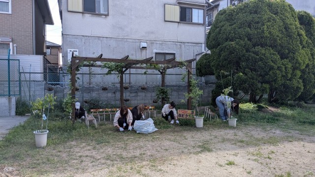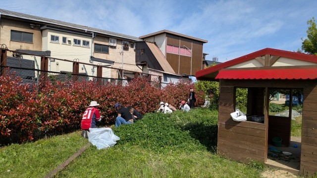 今日は、南園庭をつくろう会の皆さんにお願いし、ビオランドの草抜きをしていただきました。卒園児の保護者の方もですが、在園児の保護者の皆さんがたくさん参加してくださいました。草抜きをしながら、保護者の方同士でお喋りをして楽しそうにしておられる姿がとても嬉しかったです。「1時間じゃ足らない!」という声もいただきました。