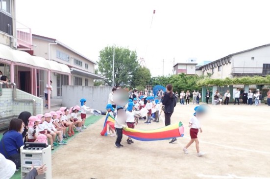 4歳児ももぐみさん、力いっぱい踊ったり玉入れをしたり、みんな仲良く頑張りましたね。海賊、かっこよかったですよ、