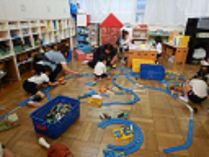 今日は一緒に遊ぼうがありました。朝は雨天だったため、室内で過ごしました。そら組が「一緒に遊ぼう!」「こっちやで!」と手を引いてままごとをしたり、線路をつなげて電車で遊んだり、塗り絵をしたり楽しく過ごしました。