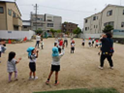 その後、天気が良くなり外で遊びました。みんなでパイナップル体操をして体もたくさん動かしました。