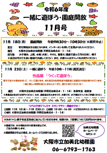 11月一緒に遊ぼう・園庭開放について