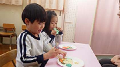 ばら組12月の保健指導「野菜を食べよう」 公開日 2024/12/03 更新日 2024/12/03 幼稚園日記 体重測定の後「野菜を食べよう」というテーマで保健指導を行いました。 絵本『やさいのおなか』を見て色々な野菜があることを知った後、絵本に登場した野菜を使って、自分だけのオリジナルサラダをつくるごっこ遊びをしました♪ お話の最後に、野菜を食べるといいうんちが出ること、かぜをひきにくくなることを伝えました。 色々な野菜に挑戦して、元気な体作りをしていこうね。 いいね(0)