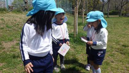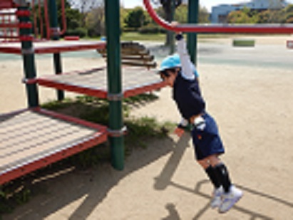 あたたかな春の日差しが心地よい中、園の近くにある巽東緑地公園へお散歩に行ってきました。桜がきれいに咲いている広い公園でだるまさんがころんだをしたり、大型遊具で遊んだり、春の自然探しをしたりして楽しみました。地域の小さいお友達とも仲良くなったり、小学生のお姉さんに逆上がりを見せてもらったり、少し触れ合う機会ももてて、園外ならではの良さを感じてきました。