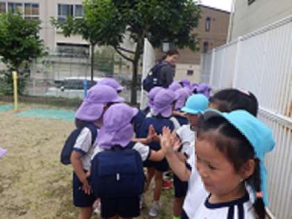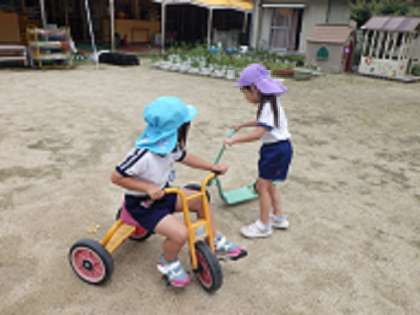 今日は、保育園のお友達が来園してくれて、園庭で一緒に遊びました。