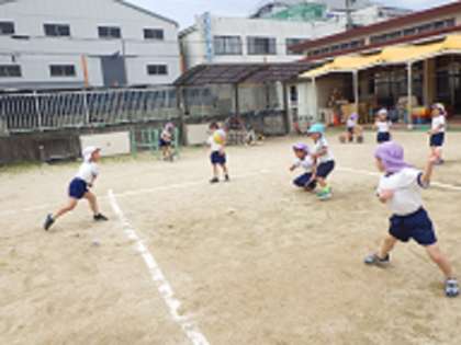 ドッジボールをしたり、自転車に乗ったりして好きな遊びを見つけて、保育園の友達とかかわって遊ぶことを楽しんでいました。交流後に「ドッジボールしたときに守ってもらって仲良くなれたよ」「一緒に鉄棒できたよ」「いろんなごちそうつくって遊んだよ」と、どんなことをして仲良くなったのかをきらきら笑顔で話していました。一緒に遊んで楽しかったことがよく伝わりました。