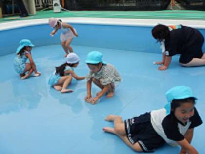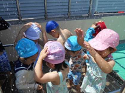 前日に今日からのプールに備えて、そら組がはりきってプール清掃をしました。そして、今日、とてもいい天気の中、プール開きをしました。水の冷たさを感じて、みんなでプール遊びを楽しみました。これから毎日プールに入って、水と仲良しになれるといいですね。