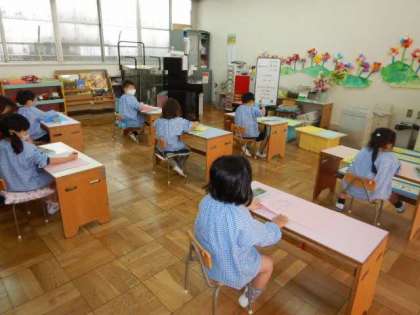 クレパスを使って、自分の好きなものをかきました。好きな色の画用紙とクレパスで、恐竜やオオカミ、お父さん、ミカンなど、いろいろなものをかいて話を聞かせてくれました。