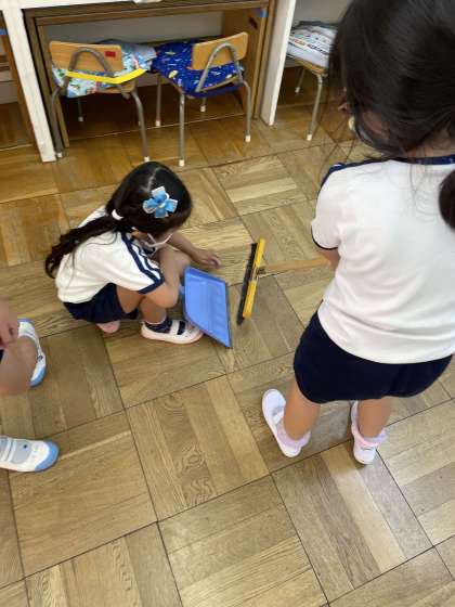 カプラが高く積み上がって、子どもたちは大喜び!掃除の時間は、ホウキ係とちりとり係で力を合わせてスムーズにできるようになりました。年長児らしく、友達と協力して活動する場面が増えてきました。