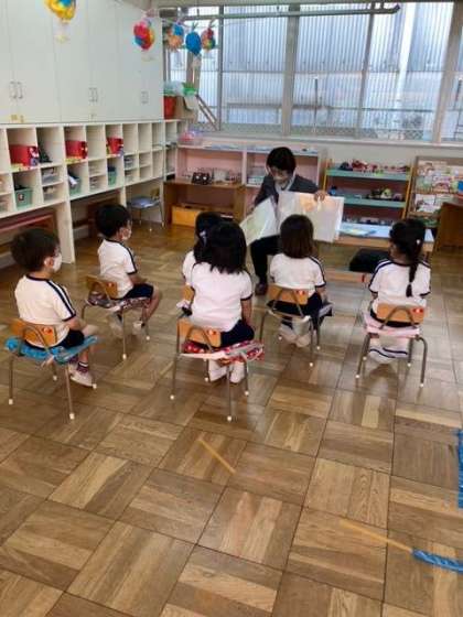 午後からは区役所から保健師が来て下さり、トイレでうんちをした時のお尻の拭き方について、絵本の読み聞かせをしてもらったり、お話を聞かせてもらったりしました。