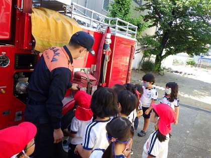 幼稚園に消防車が来ました