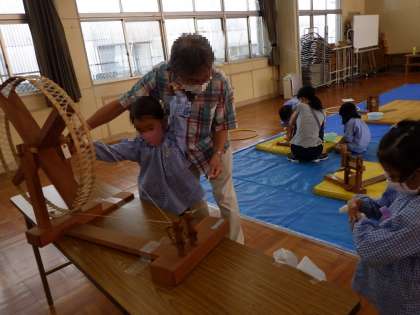 わたから糸へのつくり方や、機械の使い方など、一つ一つ丁寧に教えてくださったので、子どもたちは、とても楽しく活動することができました。