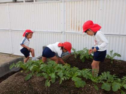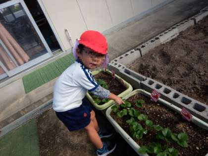 栽培物、大きく育っています 公開日 2022/10/24 更新日 2022/10/24 幼稚園日記 幼稚園で育てているイチゴやダイコンの水やりをしたり、雑草を抜いたりとお世話をして生長を楽しみにしています。今日は、イチゴに花が咲いているのを見つけ、教えてくれました。 いいね(0)