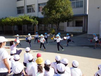 次は5年生たちの演技です。縄跳びを使ったかっこよくて楽しい演技にそら組の子どもたちはとても感動していました。。