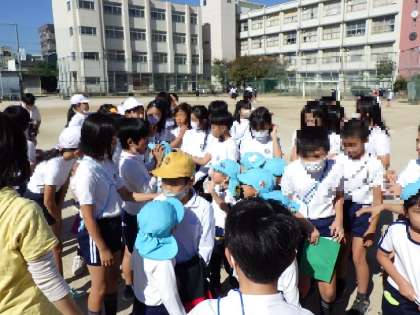 はじめにお互いの運動会の演技を発表しました。そら組の演技に5年生たちから「すごいね!かっこよかった!」という感想が聞かれました。