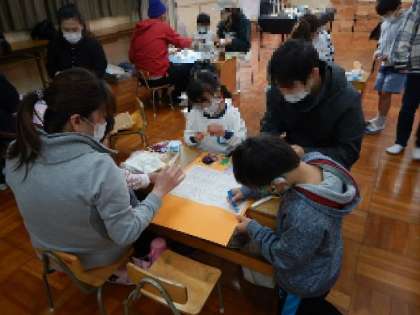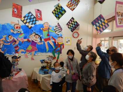 これまでに作った作品や絵の、頑張ったところや工夫したところを、じっくりとおうちの方に聞いてもらい、子ども達はとても嬉しそうでした。