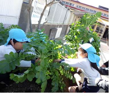 大きくなるにつれて、間引きをしたり、雑草抜きをしたり、肥料をあげたりしながら、みんなで育てた大根です。
