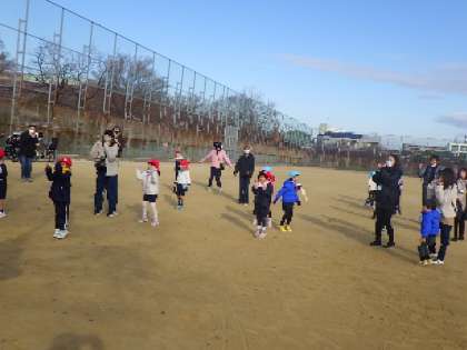 おうちの人と一緒に広いグランドでたくさん走りながらあげました。