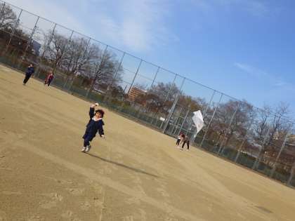 走っているうちに、子どもたちは風の向きや強さを考えながらあげている姿が見られました。