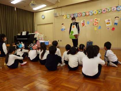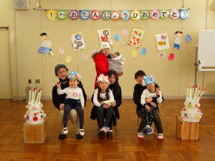 楽しみにしている園長先生のエプロンシアターをみたり、みんなで「こすれこすれ」のダンスをしたり、1月の誕生会も、とても楽しい誕生会になりました。