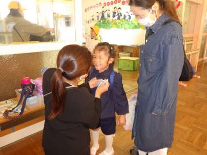 ピカピカのそら組の名札や新しい保育室に胸をはずませていました。