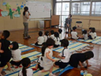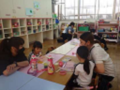 弁当参観後は、歯科園医さんにきてもらい、歯磨きの講演会と歯磨き指導を受けました。実際に仕上げ磨きをしている様子を確認してもらい、仕上げ磨きの大切さを親子共々感じることができたようでした。